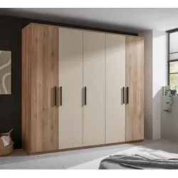 Star Möbel Kleiderschrank mit 5 Türen in Plankeneiche Holzoptik 250 cm breit