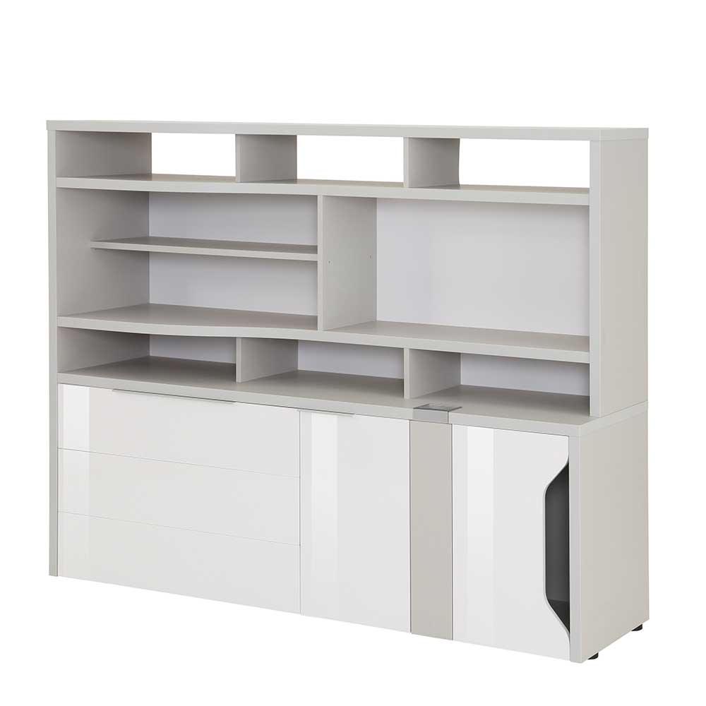 Die Kombination aus Grau und Weiß Hochglanz verleiht dem Müllermöbel Büroschrank eine zeitlose Eleganz, die sich harmonisch in jede Büroumgebung einfügt. Das Grau sorgt für eine ruhige und entspannende Atmosphäre, während das Weiß Hochglanz einen Hauch von Luxus und Modernität verleiht.